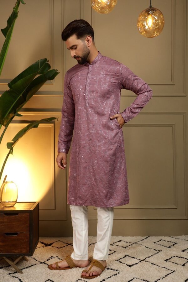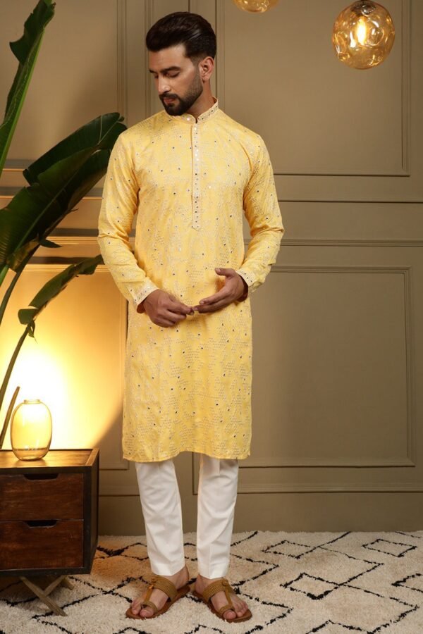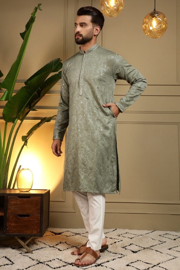 Men’s Heavy Khadi Cotton Kurta Pyjama with Embroidery Mirror Work | Festive & Wedding Ethnic Wear