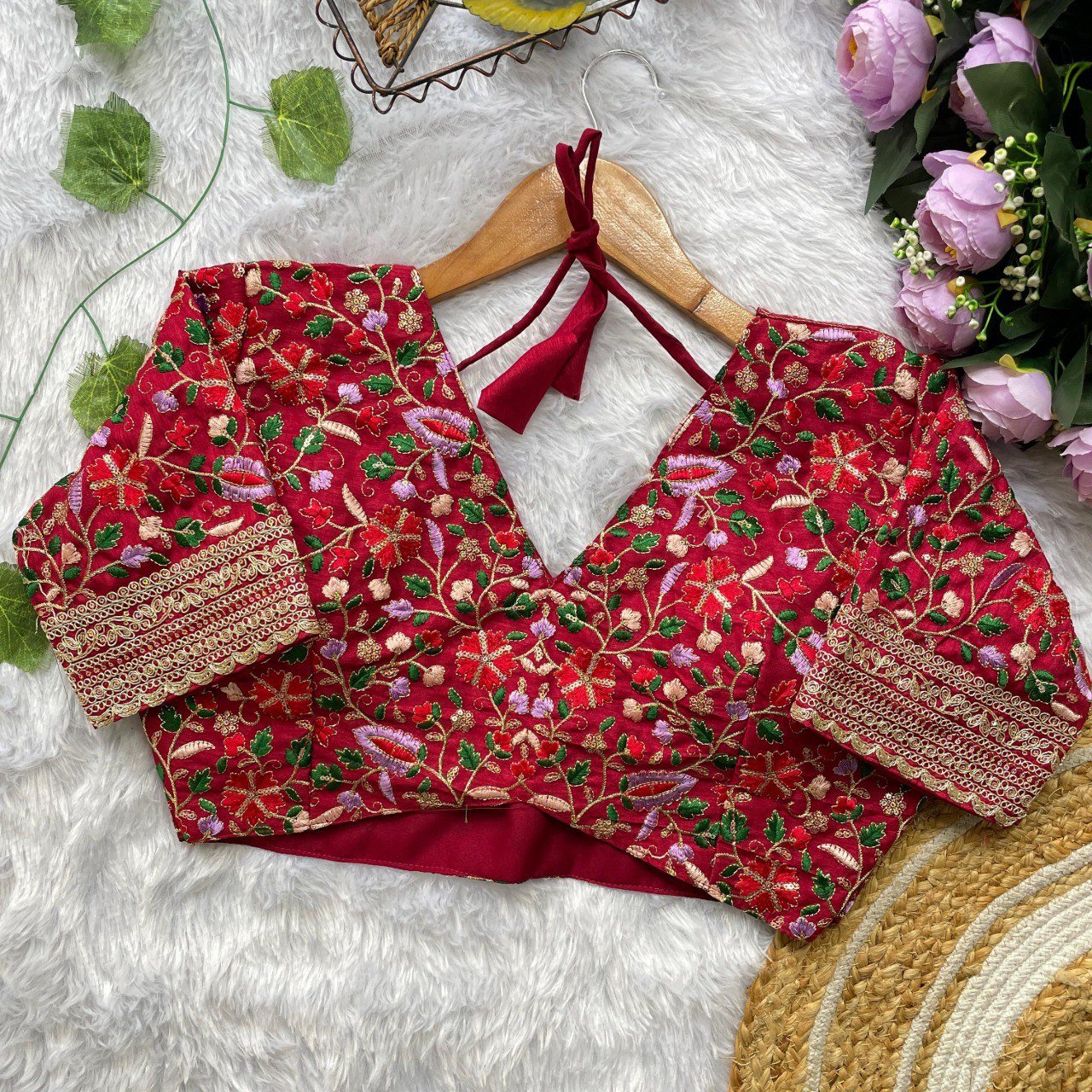 Fully Stitched Designer Blouse with multi-colour embroidery